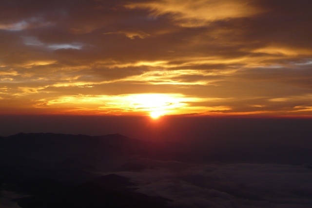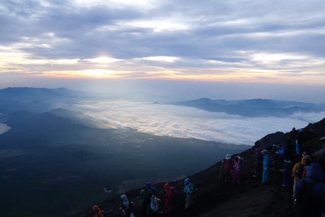 御来光も感動したが、下に見えるこの雲の厚さ、濃さに感動した。